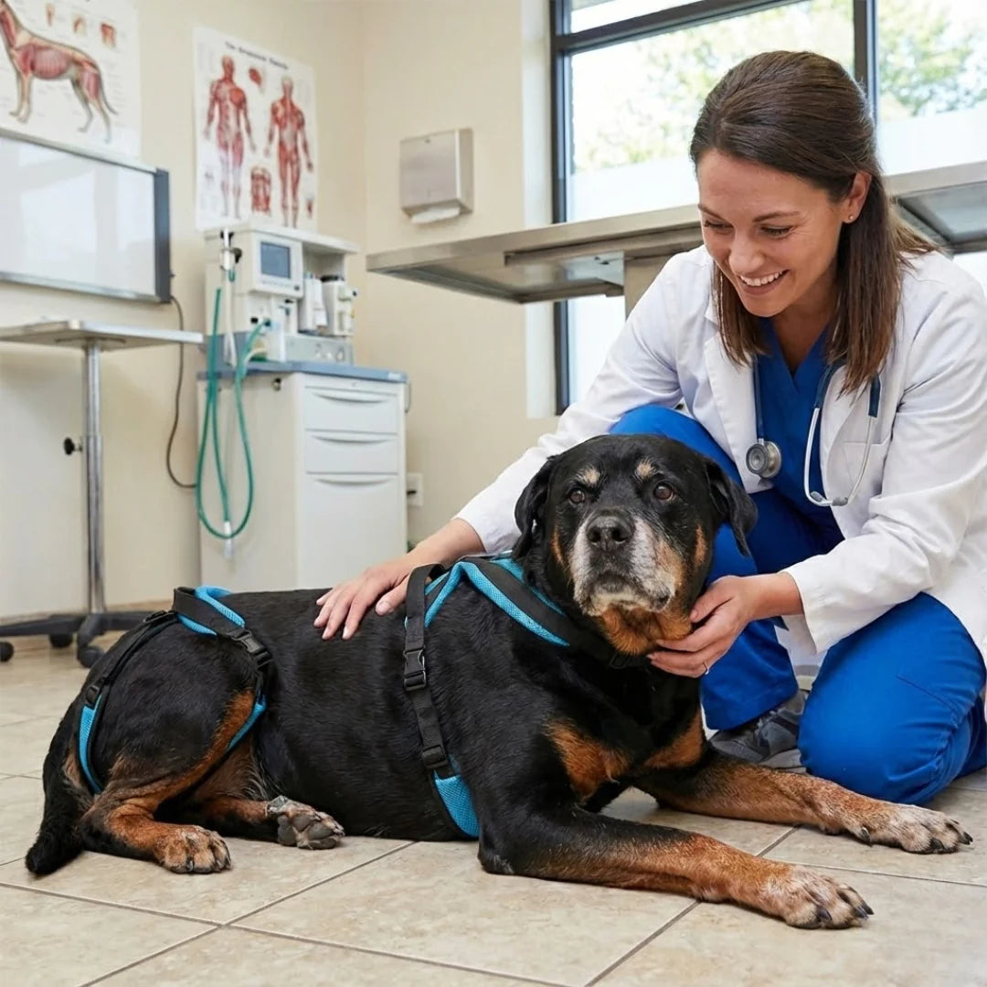Yes! Petrio™ is specifically designed for dogs with arthritis, hip dysplasia, degenerative myelopathy, and other mobility challenges. The dual front and rear support handles help distribute your dog's weight evenly, reducing strain on painful joints while allowing them to move more comfortably. Veterinarians and canine rehabilitation specialists recommend mobility harnesses like Petrio™ as part of a comprehensive care plan for dogs with these conditions.